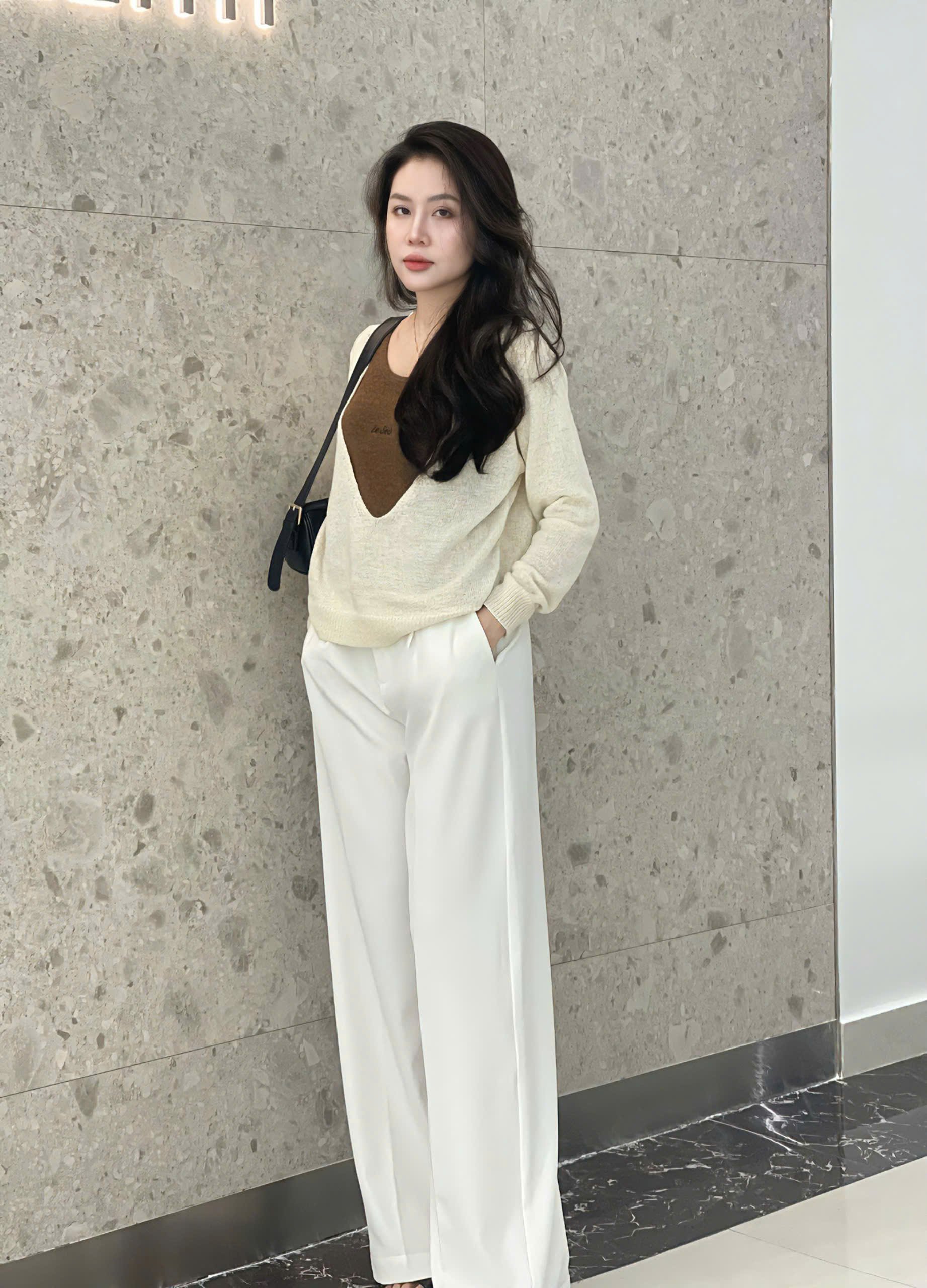 Set Áo Len Dài Tay Dáng Rộng Cổ V 3213
