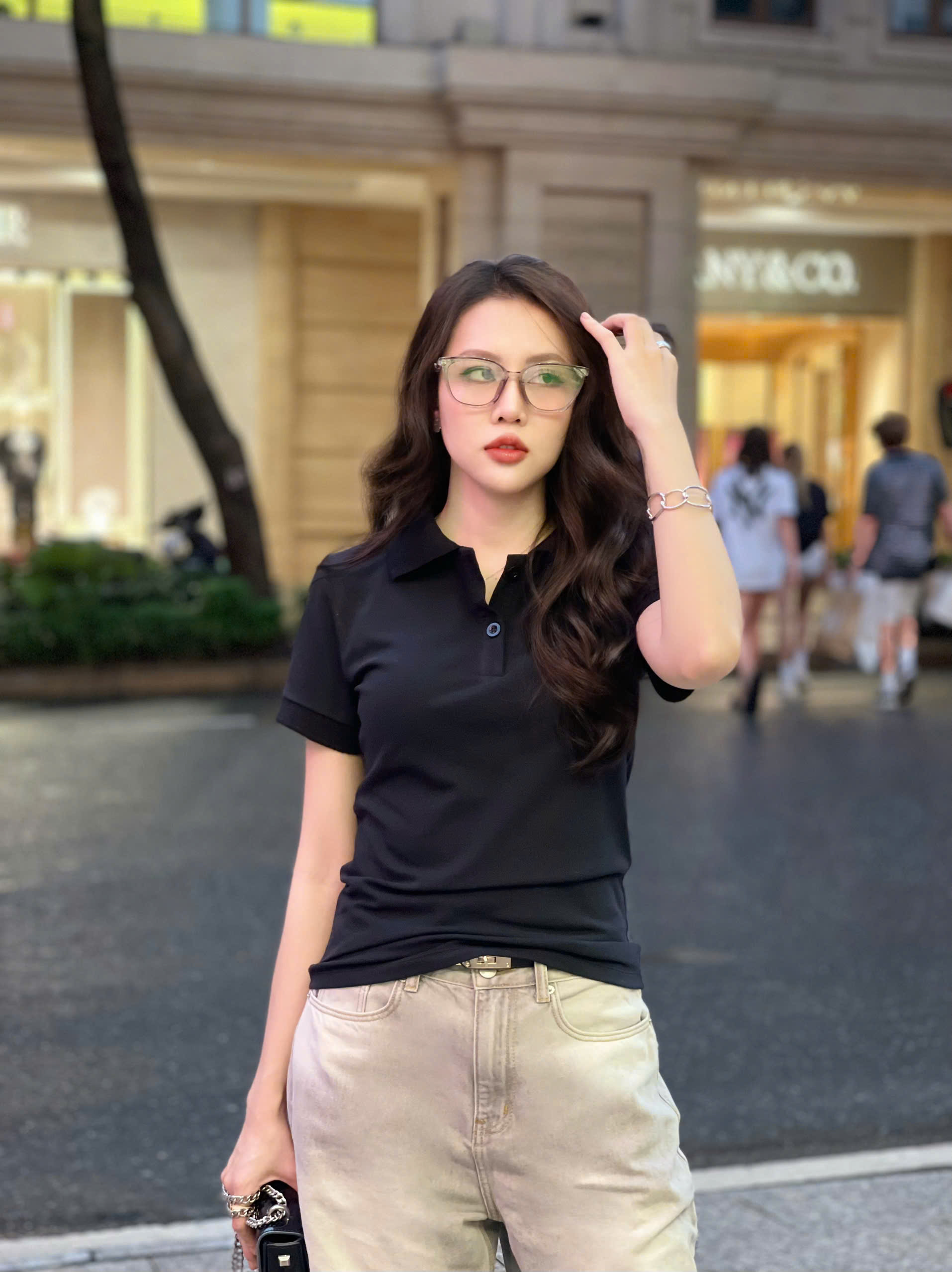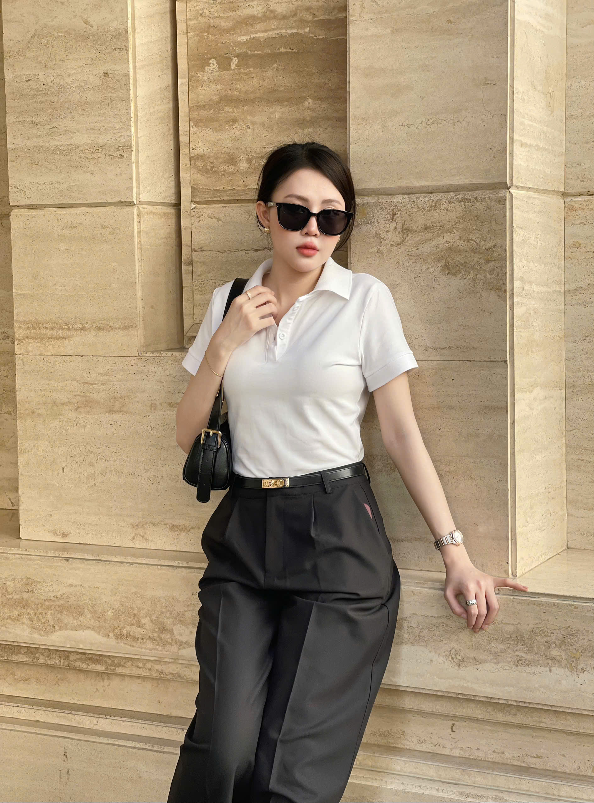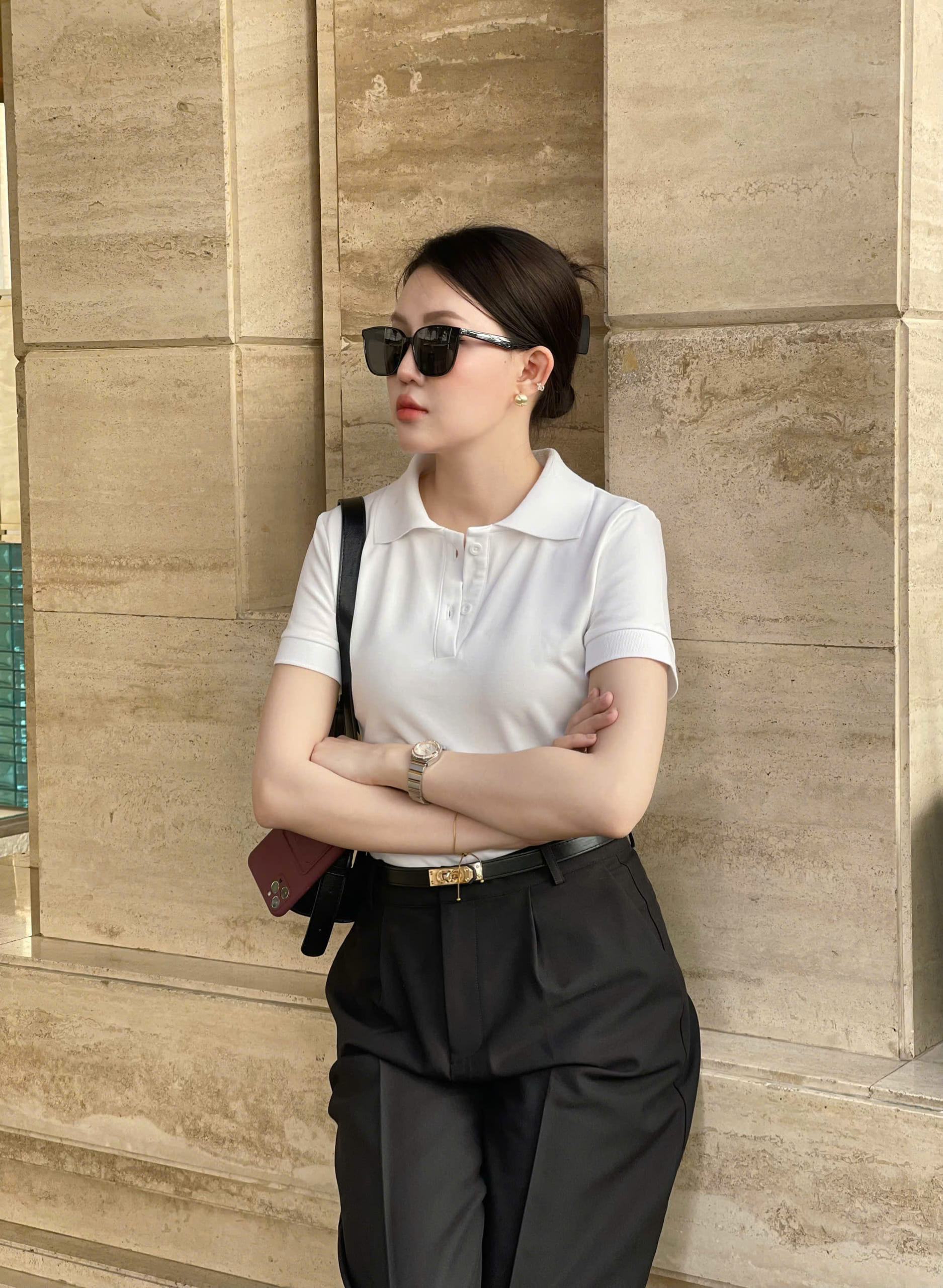 Áo thun dáng polo cổ bẻ, tay ngắn, ôm nhẹ phần eo