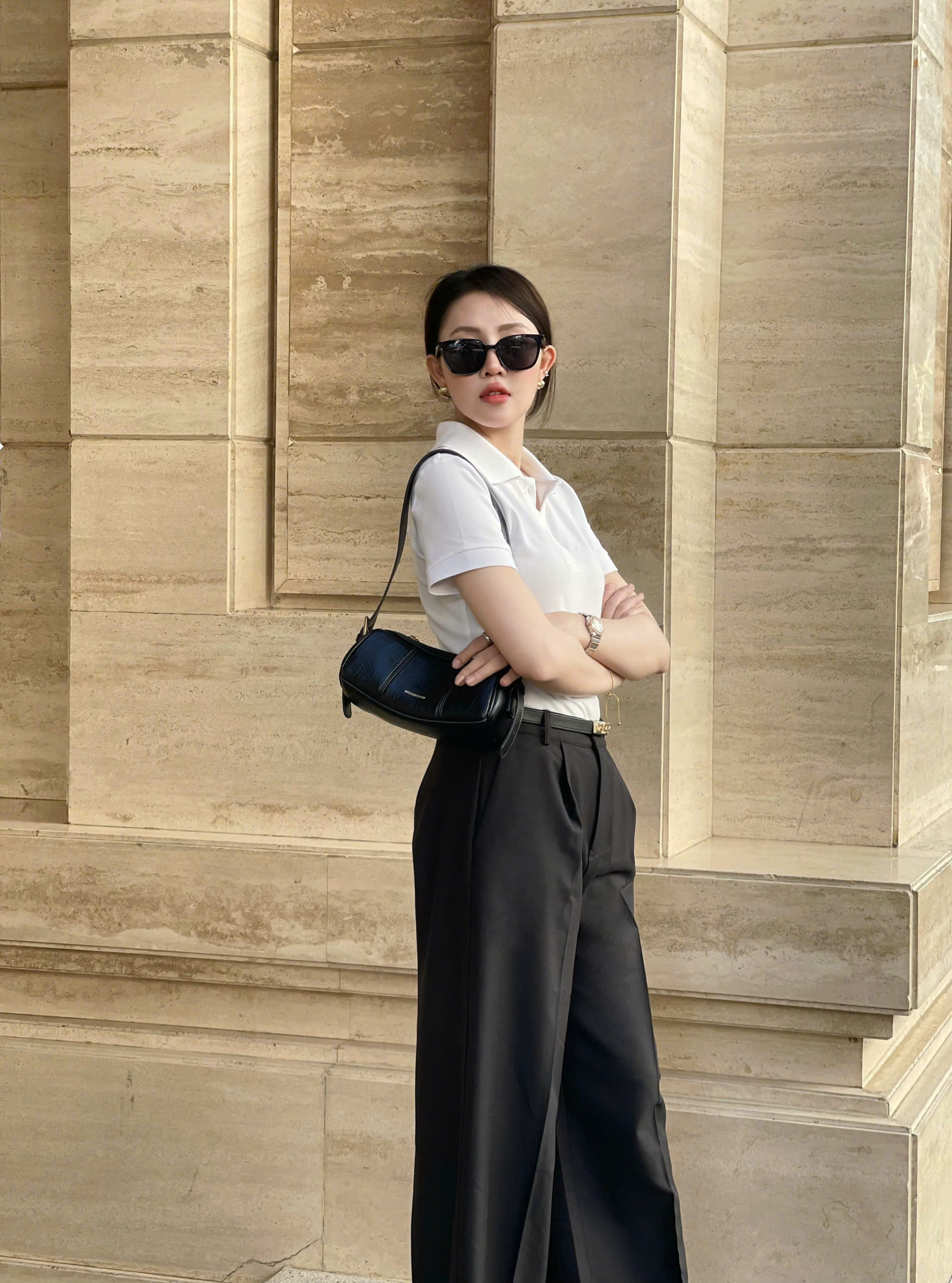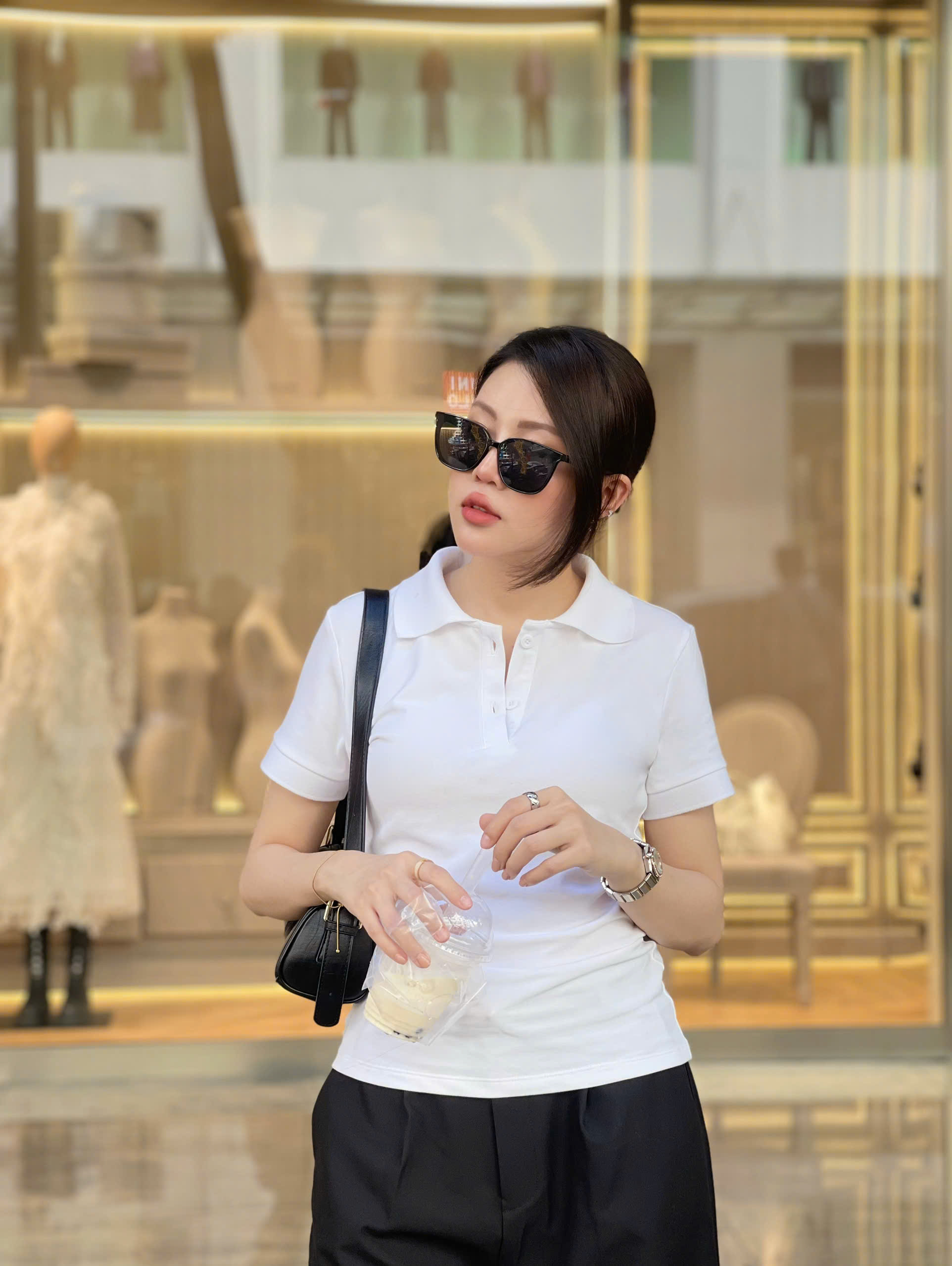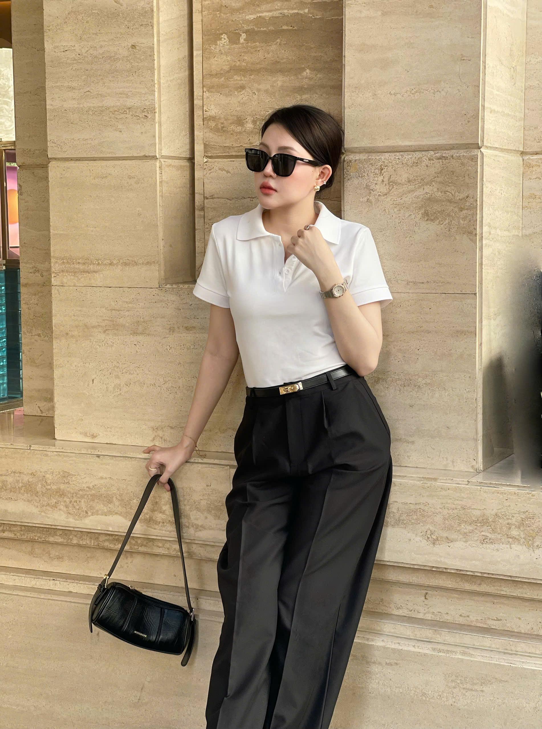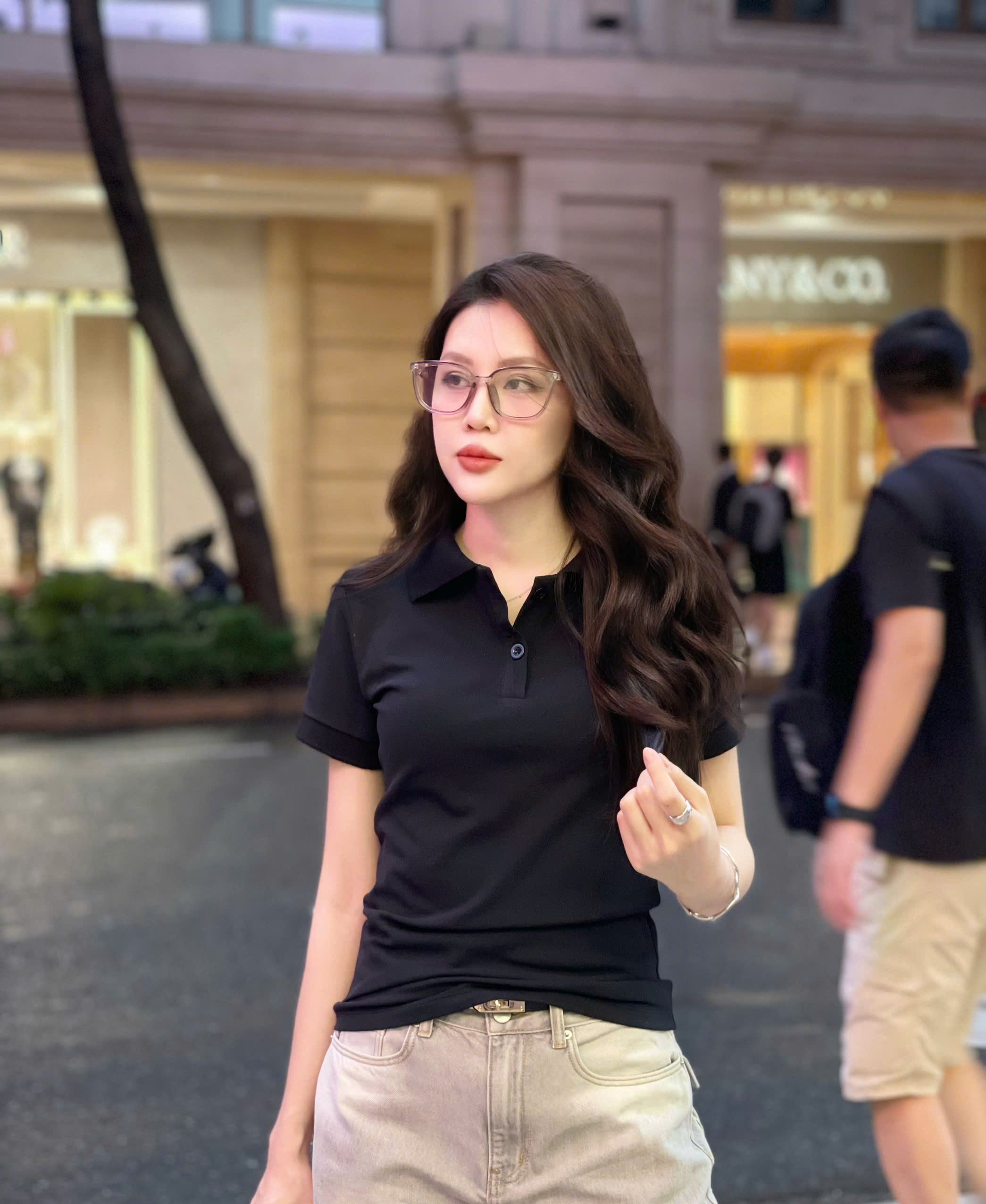 Áo thun dáng polo cổ bẻ, tay ngắn, ôm nhẹ phần eo