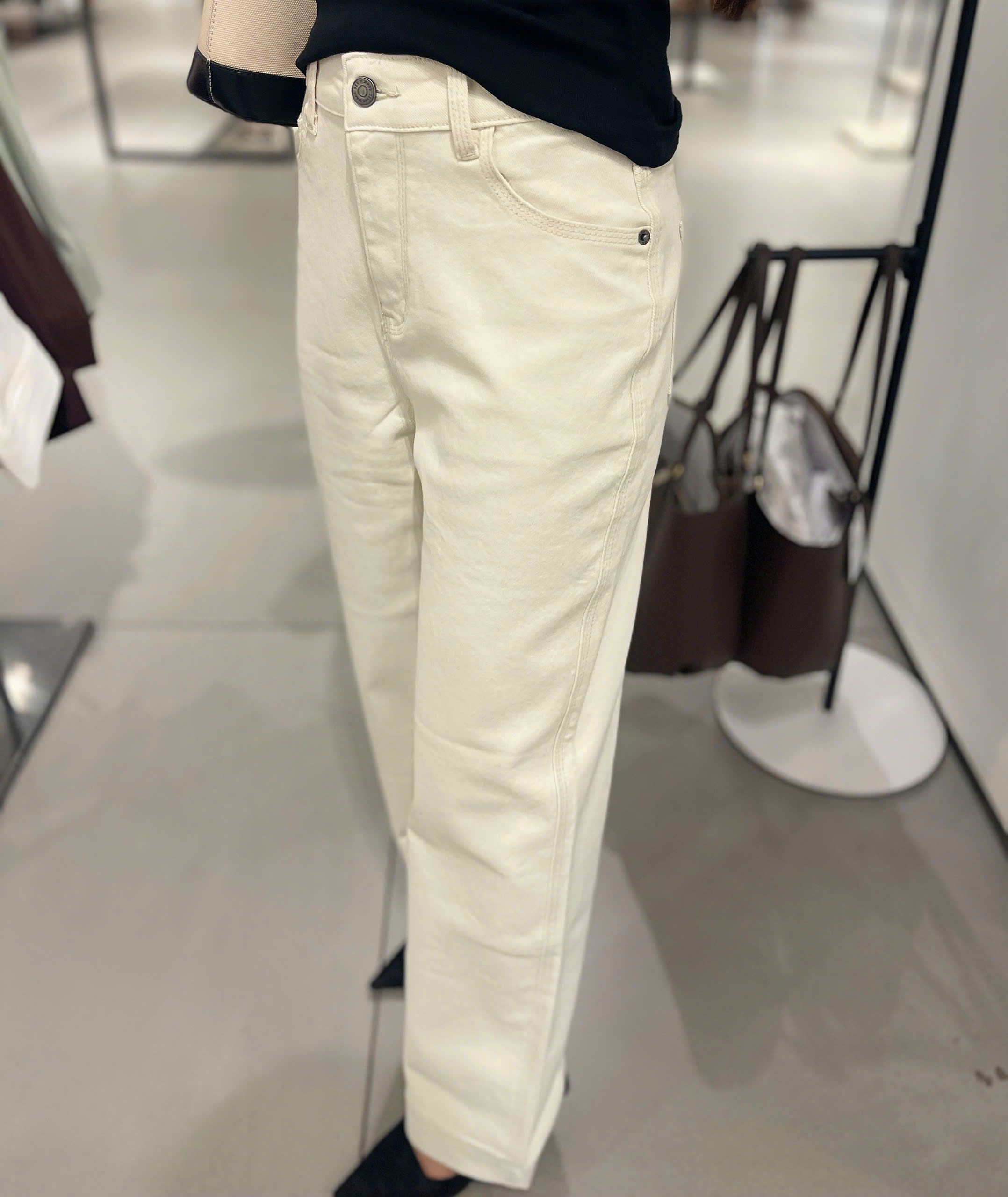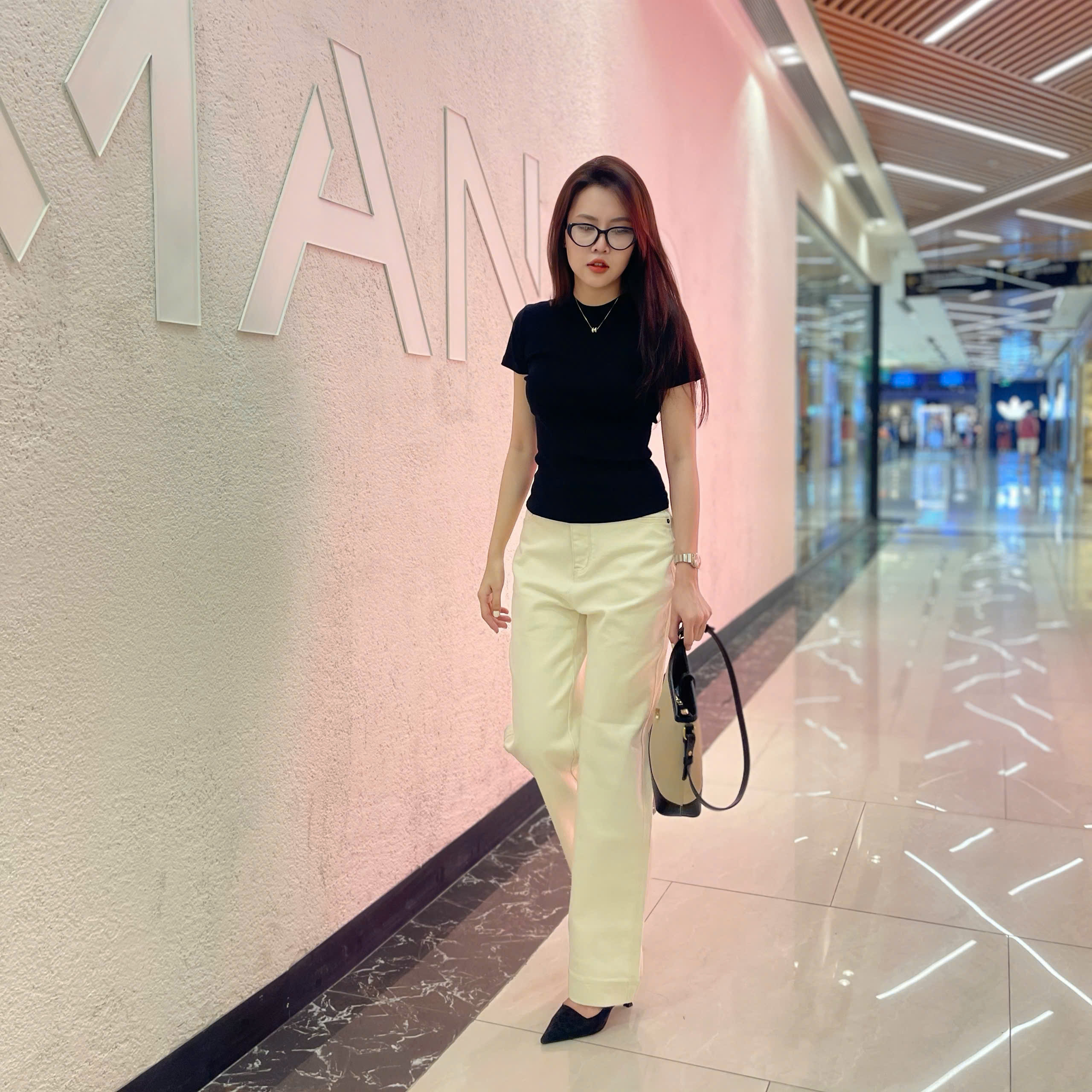 Tên sản phẩm: Quần Jeans Nữ Ống Đứng, Màu Be, Cạp Cao Dáng Rộng Thiết Kế PAGGI 1010